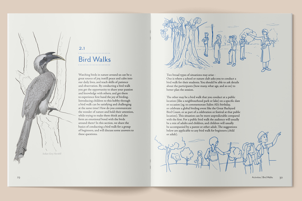Beautifully illustrated by Saumitra Deshmukh and designed by Aditi Elassery, this handbook is a visual delight. The evocative line drawings create an instant connection with the subject and bring focus to the importance of art-based learning for nature education. The handbook features more than 60 games and creative activities, giving the educator a wealth of ideas to explore and adapt for their use.