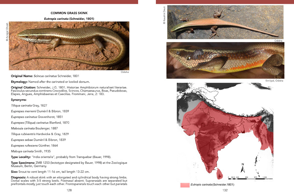 Its one-of-a-kind content has well-explained taxonomic characters with diagrams, detailed descriptions, photographs of different colour morphs, and measurements of all the recognised skink species of India. The book also features maps, as well as references to most of the known scientific works related to Indian skinks.