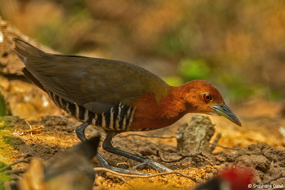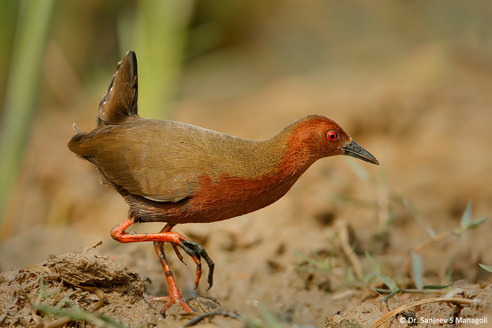 Also known as Ruddy Crake, the bird is a resident in Karnataka with some northern populations migrating south in winter. The body is flattened laterally to allow easier passage through the reeds or undergrowth.