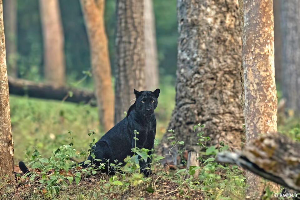 It was an amazing moment in October 2014 when I had my first sighting of a black leopard in Nagarahole National Park. Until then, there was no record of a black leopard sighting in the park for the last 30-32 years. It looked like a black patch of wood up on a tree, almost like a burnt branch. We turned around, as we wanted to see it from a different angle, and saw legs and a tail hanging from the branch. We stopped our vehicle and it was a black leopard indeed! I was awestruck and took some time to realise that I was actually looking at a black leopard. Our guests were happy and took many photographs with curiosity and excitement. That has been an unforgettable day for me. That is the day we realised that there is a resident black leopard at Nagarahole National Park.