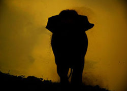 While elephants with calves are usually not known for the greatest tolerance to visitors, this matriarch had more reasons to be short tempered. We were holding on to a stump, sitting in the boat, and out of nowhere, she charged us with a threatening trumpet. Even as the boatman quickly pushed the boat to deeper waters to evade the charging elephant, I clicked this silhouette with a basic 70-300 Nikon ED lens I had in those days.
