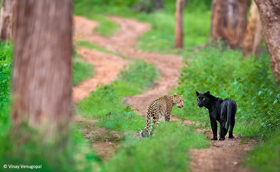 It was an evening safari in Kabini – we drove along that famous road where every visitor hopes to sight one of the forest’s rarest denizens. We spotted a vehicle parked on the road, a little ahead of us. Already excited about the prospect that lay ahead, we rushed towards the vehicle. It turned out that they had sighted the melanistic leopard on a tree, in the company of 2 other leopards for nearly 45 minutes. They had mated on several occasions during that span of time and had got down to the ground from the tree just a few moments before we had arrived.