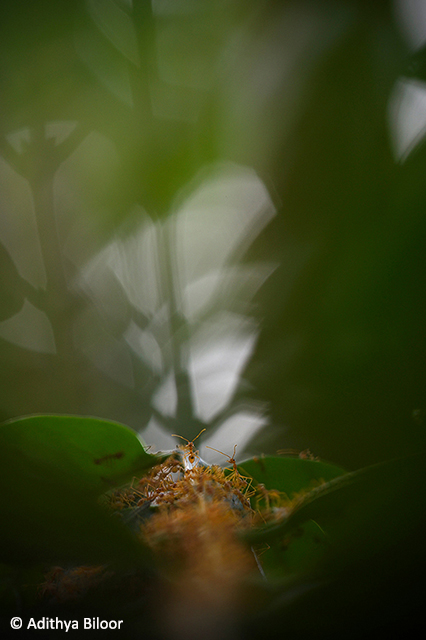 I am a farmer by profession and a photographer at heart. I live in the midst of evergreen forests of the Western Ghats, in small village called Madodi, near Kodachadri in Karnataka. I have a keen interest in observing nature and wildlife around me. Other than the many Western Ghats endemics (including species of plants, birds and animals), I find myself drawn to Weaver Ants. These ants are very common in many parts of the world. They are found in India, Sri Lanka, Indonesia, Philippines and Australia.