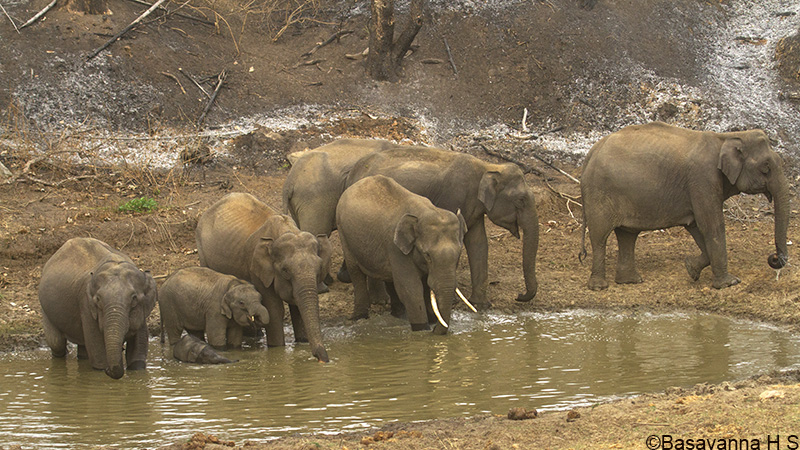 Mammals : Herd of elephant were drinking water in the pond,Gaur and Sambar..